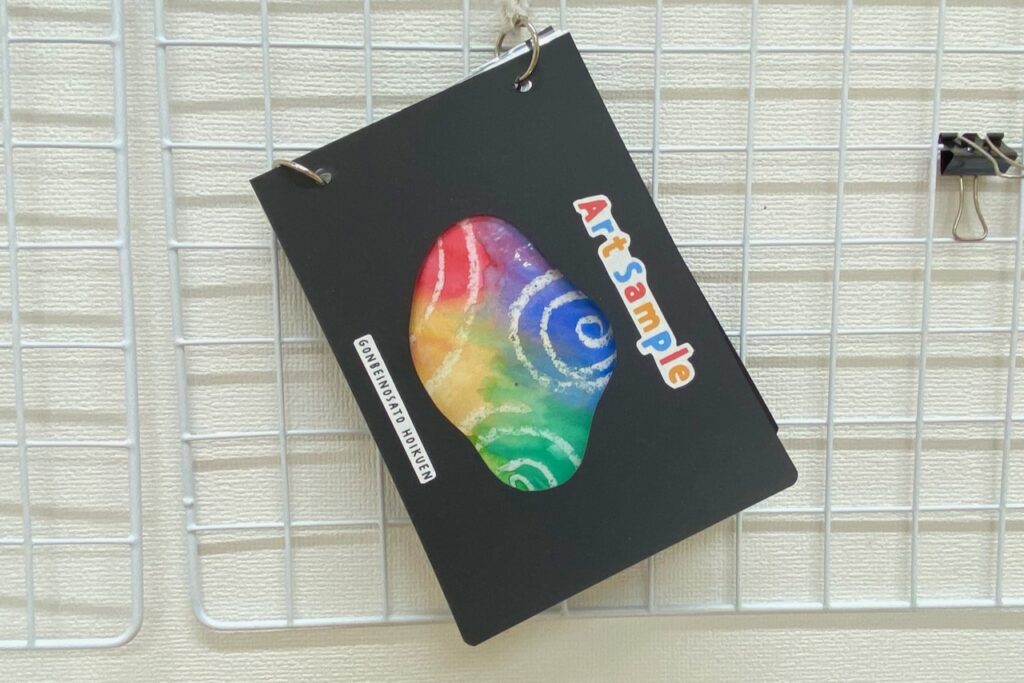 「アートサンプル」と題して、えのぐや道具を組み合わせて、どんな遊びができるのかをまとめた冊子も用意しました。