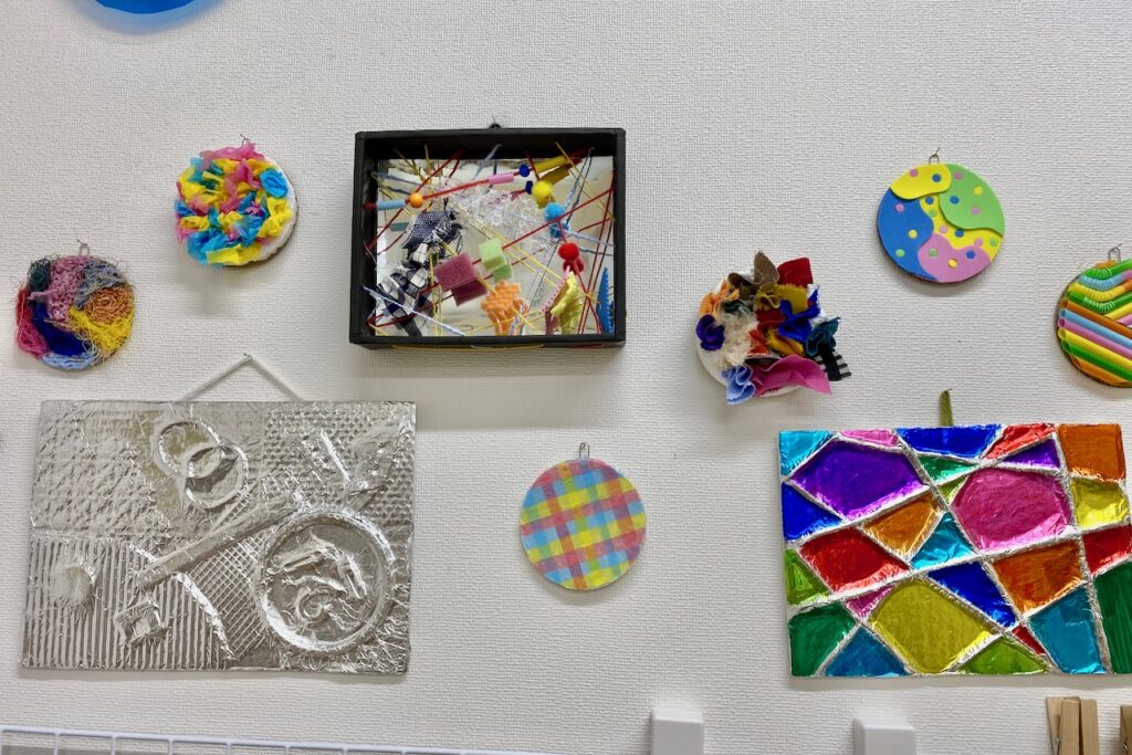 さいごに、壁には廃材や棚にある素材を使った遊びの作品を飾り、子どもたちの「やってみたい!」に繋げられるようにしました。