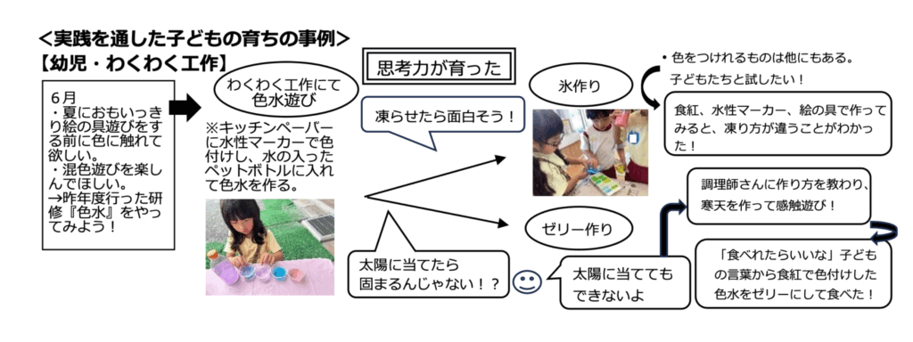 幼児クラス(わくわく工作)の事例では、子どもたちの「思考力が育った」という確かな手応えが記されています 。