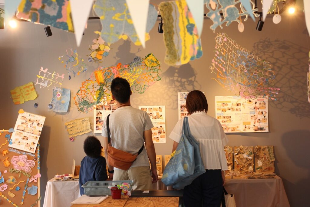 一人ひとりの作品を飾ったり、みんなで遊んでできあがったものを飾ったり、一人の子どもが楽しんだものを飾ったりと、いろんなかたちがあると思います。どんな飾り方であっても、それが対話のきっかけになり、想いを共有することが展示の面白みではないかと思います。