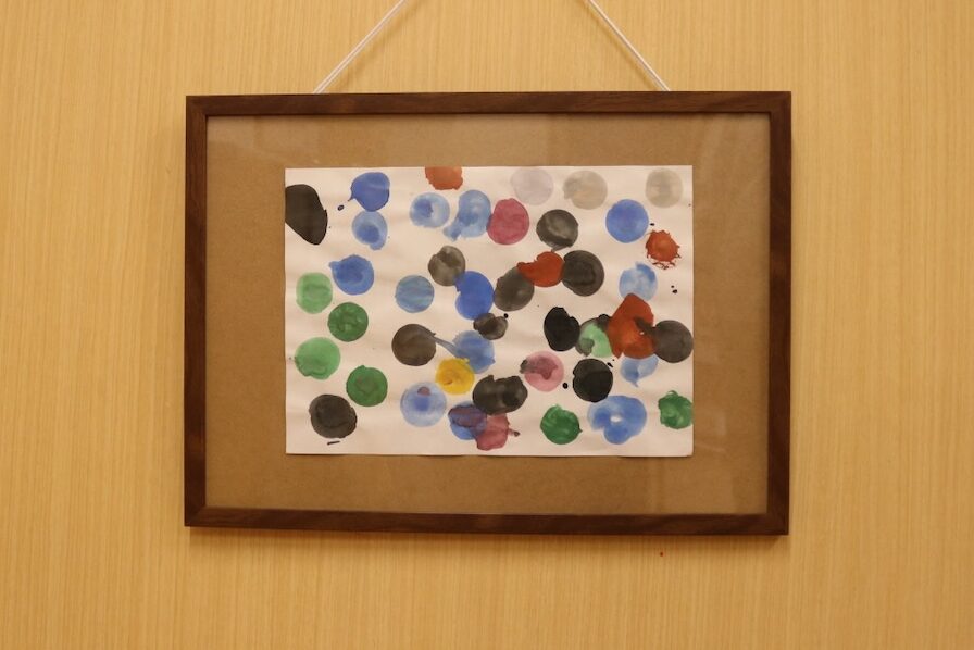 こでまりこども園あわざ様の345歳児さんのお部屋には、額縁に入れて飾った子どもの作品がいくつかあります。